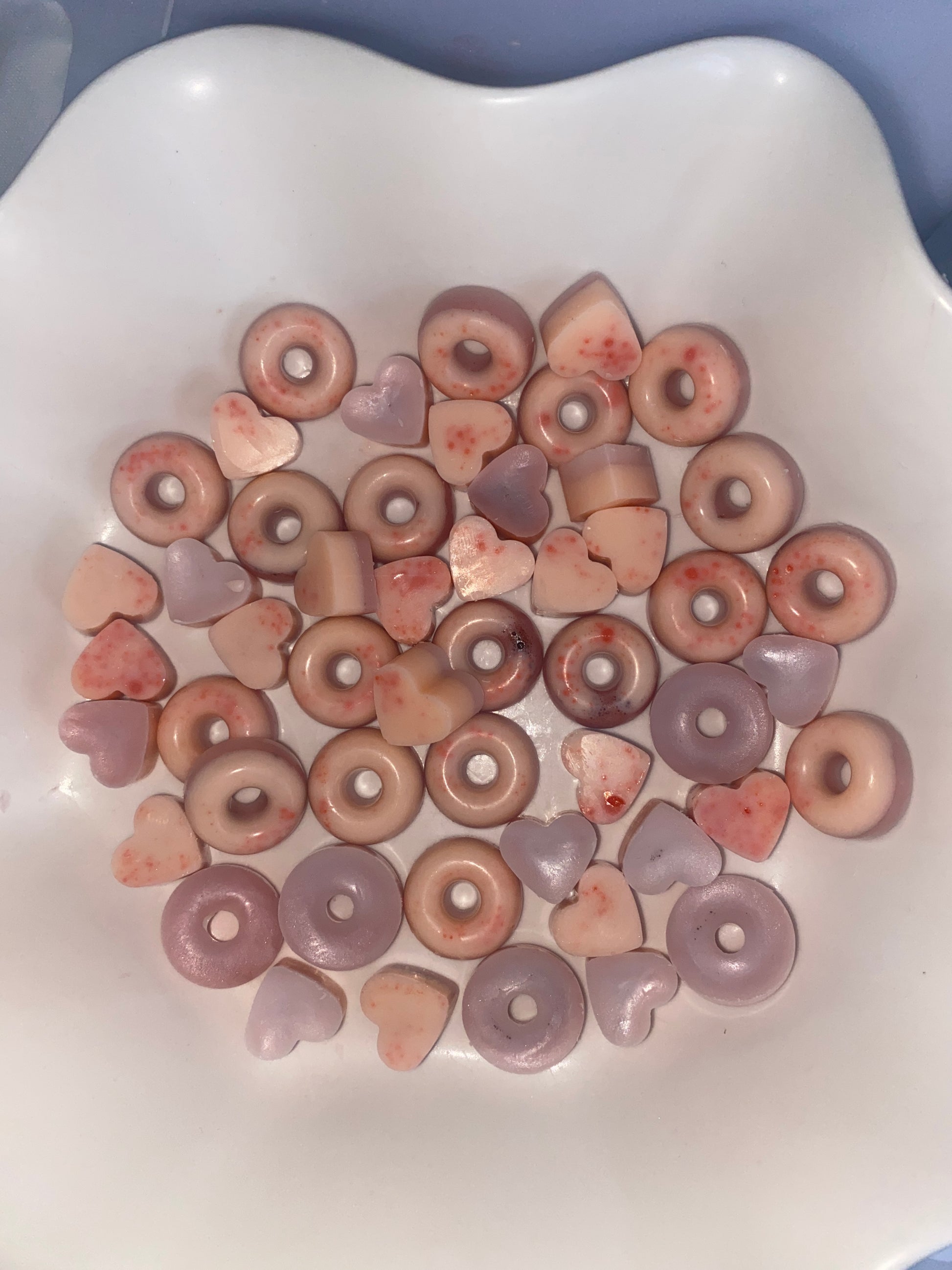 Our lovely wax melt scoopies come in a 25g Pack or 50g pack in various scents and colour combinations! You only need a few of these in your burner and they melt must faster than bigger wax!